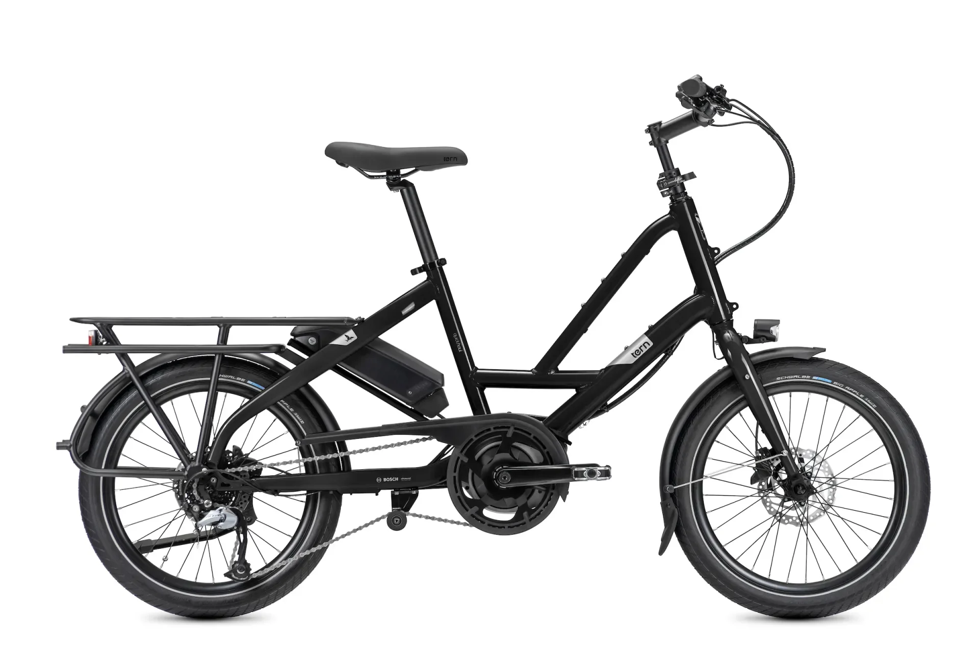 The Tern Quick Haul D8 is a versatile, compact, electric cargo bike built to make everyday tasks easier and more enjoyable. Powered by a Bosch Active Line Plus motor, it offers smooth pedal assist for confident riding around the town. Its long rear rack can carry heavy loads and an optional front rack expands your carrying capacity even further. With a low step-through frame, hydraulic disc brakes, and an adjustable fit for a wide range of riders, the Quick Haul D8 balances practicality, comfort, and fun for daily errands, family outings, or just getting stuff done.